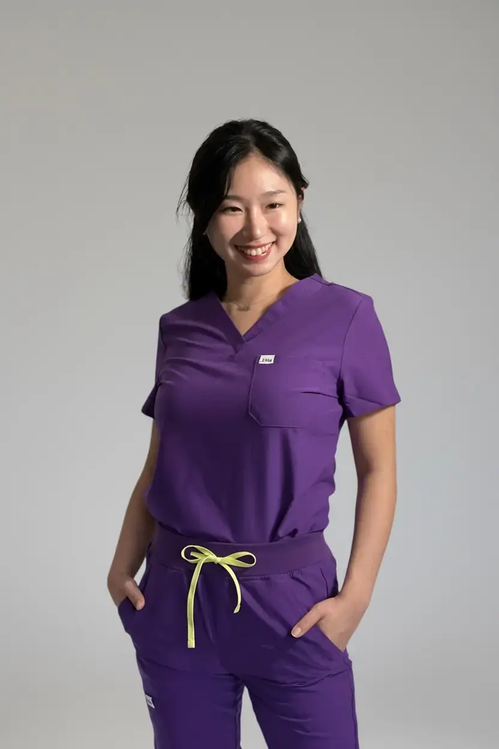 Stay comfortable and professional all day with this soft, stretchy scrub top. It has a flattering V-neck, a ribbed back neckband, and side slits at the hem for easy movement. Keep essentials close with two pockets: one chest pocket and one pen pocket.